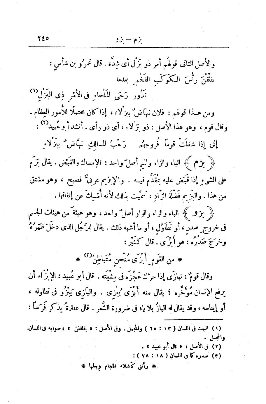 وَالْأَصْلُ الثَّانِي قَوْلُهُمْ أَمْرٌ ذُو بَزْلٍ، أَيْ: شِدَّةٍ. قَالَ عَمْرُو بْنُ شَأْسٍ: