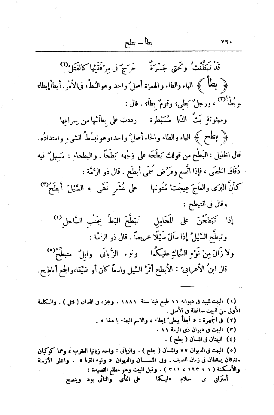 وَتَبَطَّحَ السَّيْلُ: إِذَا سَالَ سَيْلًا عَرِيضًا. قَالَ ذُو الرُّمَّةِ: