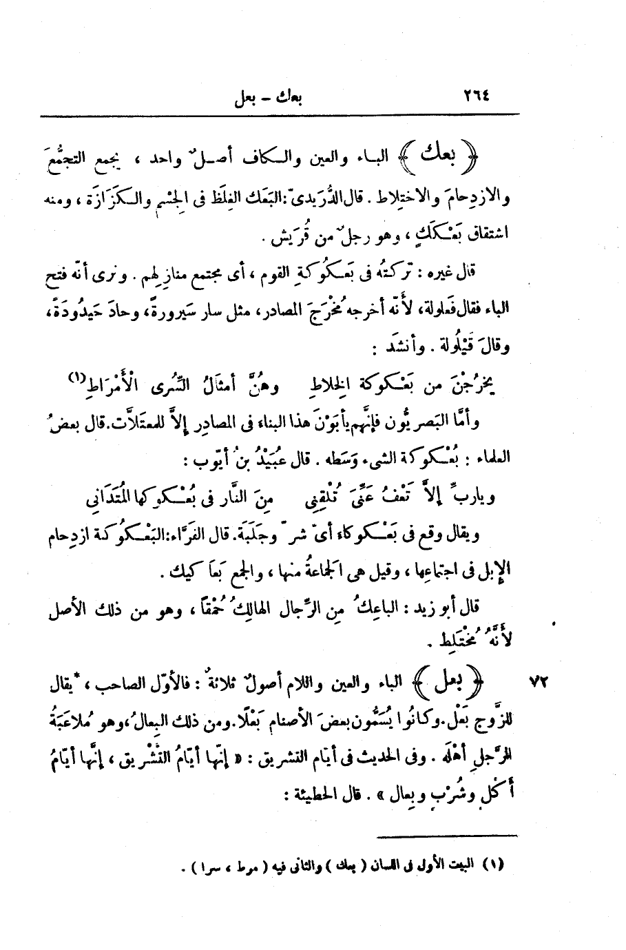قَالَ غَيْرُهُ: تَرَكْتُهُ فِي بَعْكُوكَةِ الْقَوْمِ، أَيْ: مُجْتَمَعِ مَنَازِلِهِمْ، وَنَرَى أَنَّهُ فَتَحَ الْبَاءَ فَقَالَ فَعْلُولَةً، لِأَنَّهُ أَخْرَجَهُ مُخْرَجَ الْمَصَادِرِ، مِثْلَ سَارَ سَيْرُورَةً، وَحَادَ حَيْدُودَةً، وَقَالَ قَيْلُولَةً. وَأَنْشَدَ: