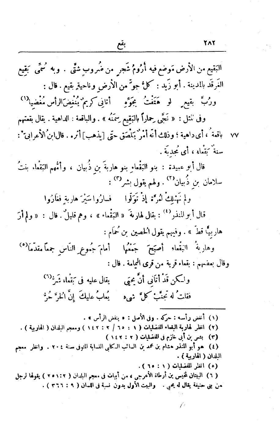 قَالَ أَبُو عُبَيْدَةَ: بَنُو الْبَقْعَاءِ بَنُو هَارِبَةَ بْنِ ذُبْيَانَ، وَأُمُّهُمُ الْبَقْعَاءُ بِنْتُ سَلَامَانَ بْنِ ذُبْيَانَ. وَلَهُمْ يَقُولُ بِشْرٌ: