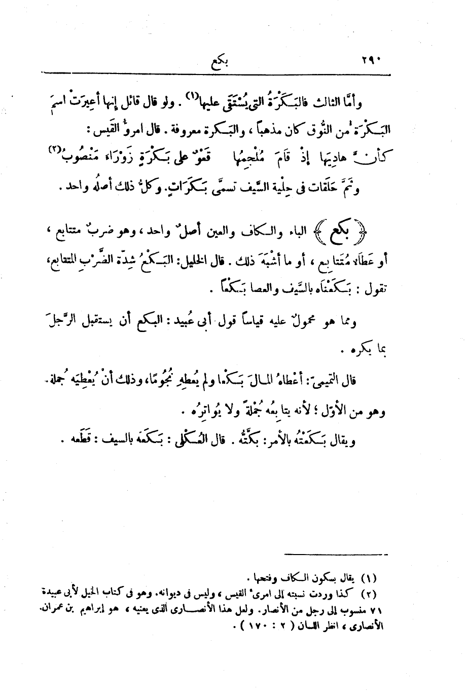 وَمِمَّا هُوَ مَحْمُولٌ عَلَيْهِ قِيَاسًا قَوْلُ أَبِي عُبَيْدٍ: الْبَكْعُ أَنْ يَسْتَقْبِلَ الرَّجُلَ بِمَا يَكْرَهُ.