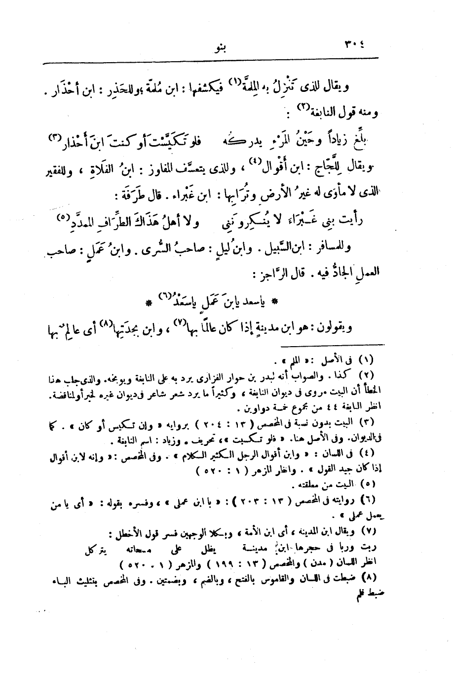 وَيُقَالُ لِلَّذِي تَنْزِلُ بِهِ الْمُلِمَّةُ فَيَكْشِفُهَا: ابْنُ مُلِمَّةٍ، وَلِلْحَذِرِ: ابْنُ أَحْذَارٍ. وَمِنْهُ قَوْلُ النَّابِغَةِ: