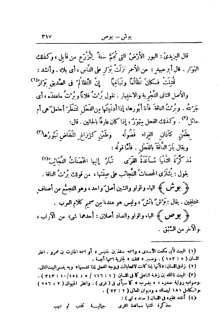 قَالَ الْيَزِيدِيُّ: الْبُورُ الْأَرْضُ الَّتِي تُجَمُّ سَنَةً لِتُزْرَعَ مِنْ قَابِلٍ، وَكَذَلِكَ الْبَوَارُ. قَالَ أَبُو عَبِيدٍ: عَنِ الْأَحْمَرِ نَزَلَتْ بَوَارٌ عَلَى النَّاسِ، أَيْ بَلَاءٌ. وَأَنْشَدَ: