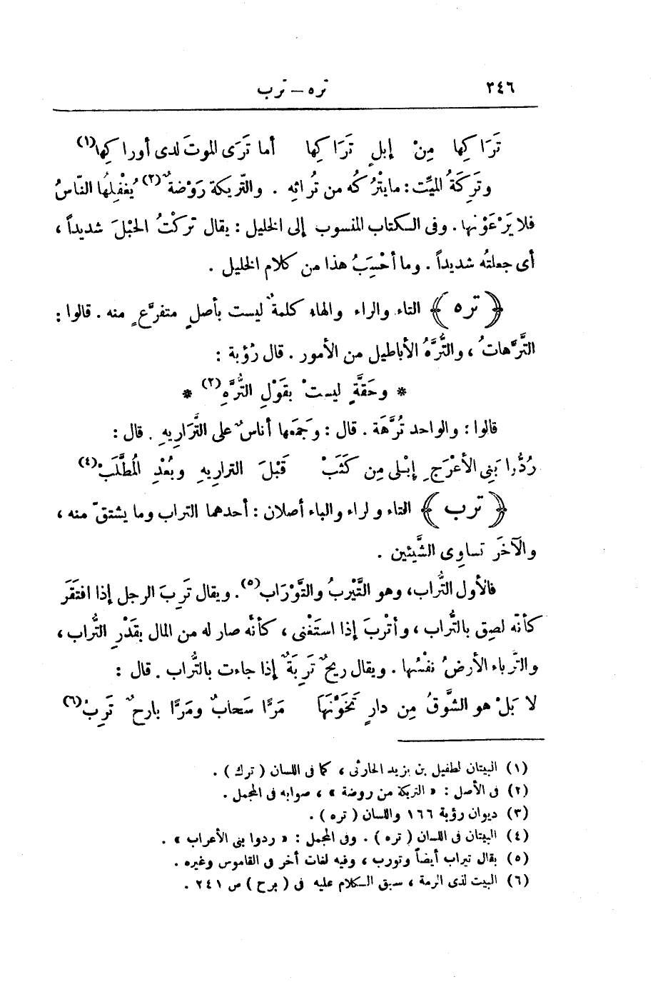 قَالُوا: وَالْوَاحِدُ تُرَّهَةٌ. قَالَ: وَجَمَعَهَا أُنَاسٌ عَلَى التَّرَارِيهِ. قَالَ: