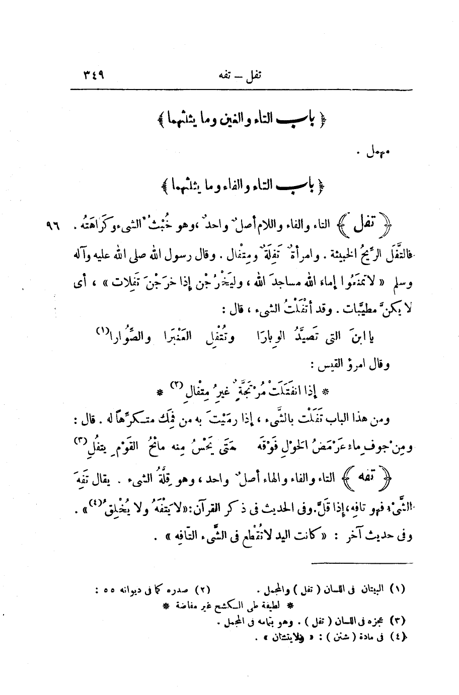 [بَابُ التَّاءِ وَالْفَاءِ وَمَا يُثَلِّثُهُمَا]