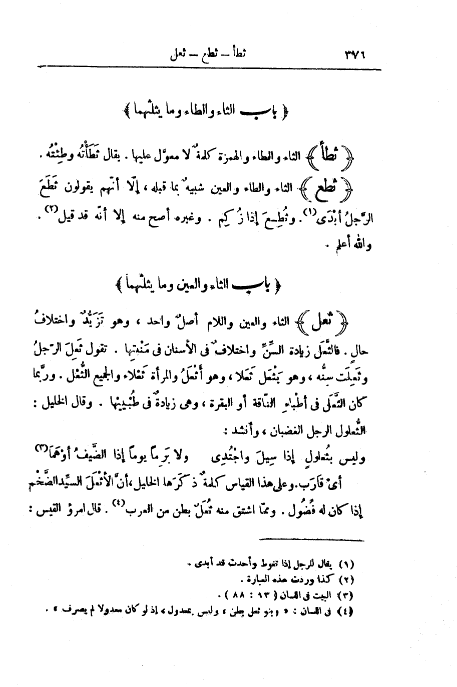 [بَابُ الثَّاءِ وَالطَّاءِ وَمَا يُثَلِّثُهُمَا]