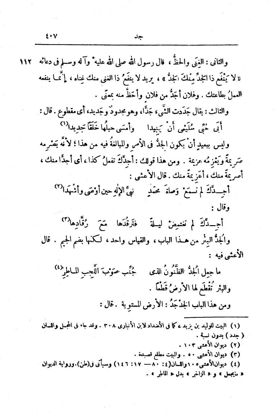 وَالْجُدُّ الْبِئْرُ مِنْ هَذَا الْبَابِ، وَالْقِيَاسُ وَاحِدٌ، لَكِنَّهَا بِضَمِّ الْجِيمِ. قَالَ الْأَعْشَى فِيهِ: