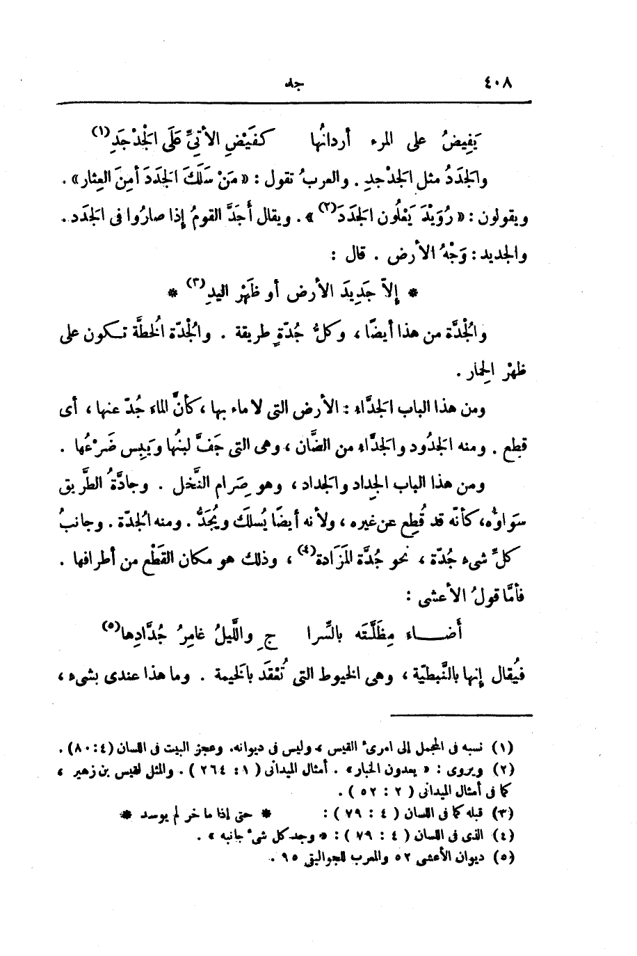 وَالْجَدَدُ مِثْلُ الْجَدْجَدِ. وَالْعَرَبُ تَقُولُ: " مَنْ سَلَكَ الْجَدَدَ أَمِنَ الْعِثَارَ ". وَيَقُولُونَ: " رُوَيْدَ يَعْلُونَ الْجَدَدَ ". وَيُقَالُ أَجَدَّ الْقَوْمُ إِذَا صَارُوا فِي الْجَدَدِ. وَالْجَدِيدُ: وَجْهُ الْأَرْضِ. قَالَ: