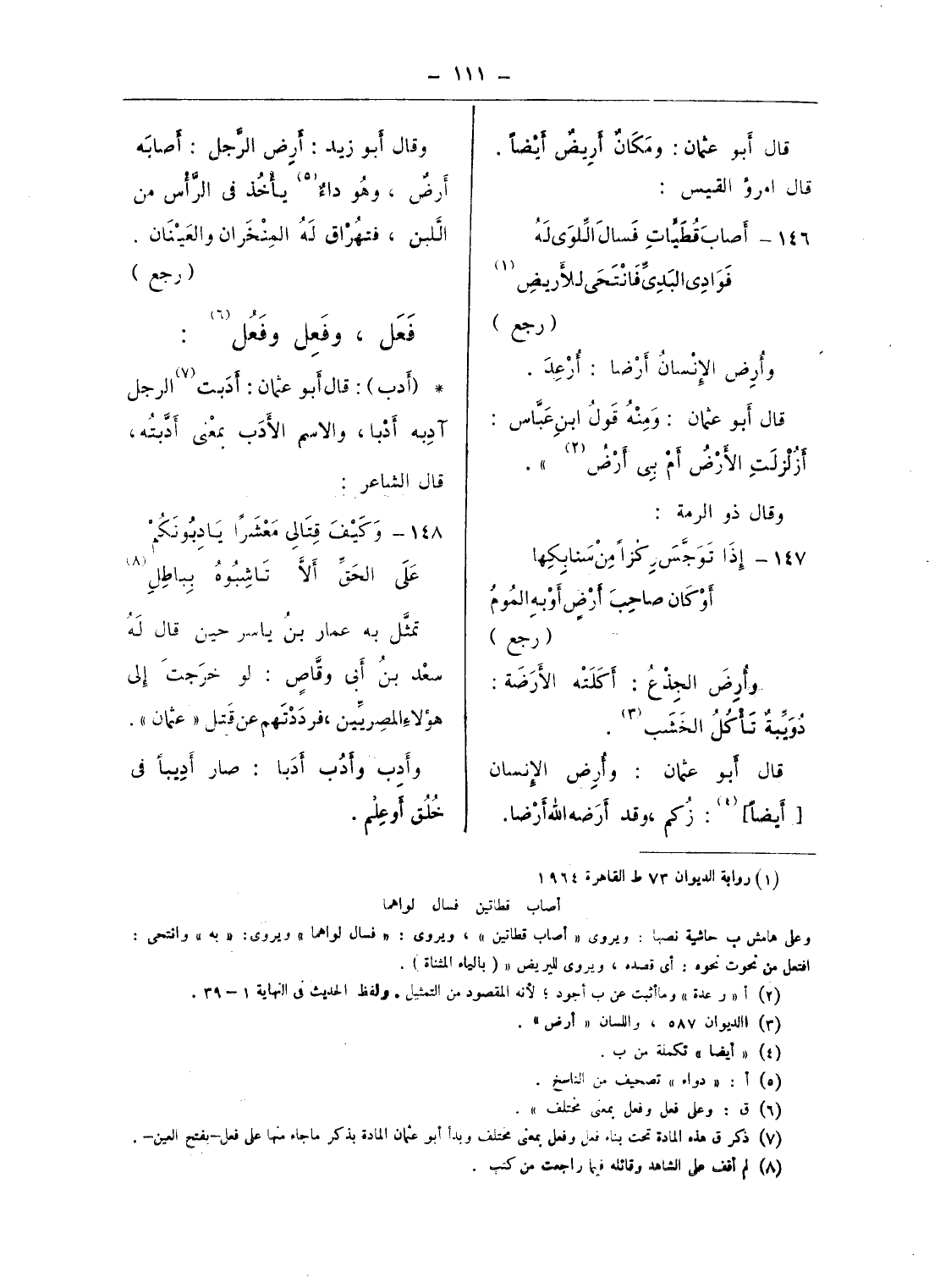 (¬7) ذكر ق هذه المادة تحت بناء فعل وفعل بمعنى مختلف وبدأ أبو عثمان المادة بذكر ما جاء منها على فعل - بفتح العين -.