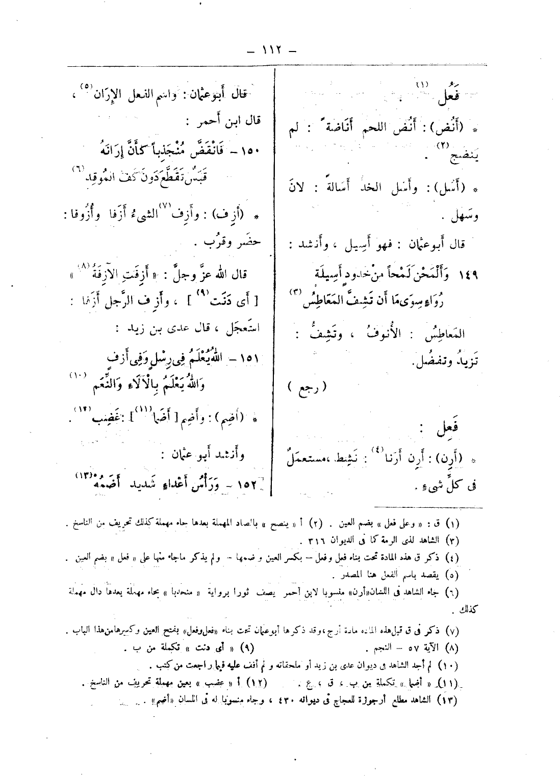 (¬4) ذكر ق هذه المادة تحت بناء فعل وفعل - بكسر العين وضمها - ولم يذكر ما جاء منها على «فعل» بضم العين.