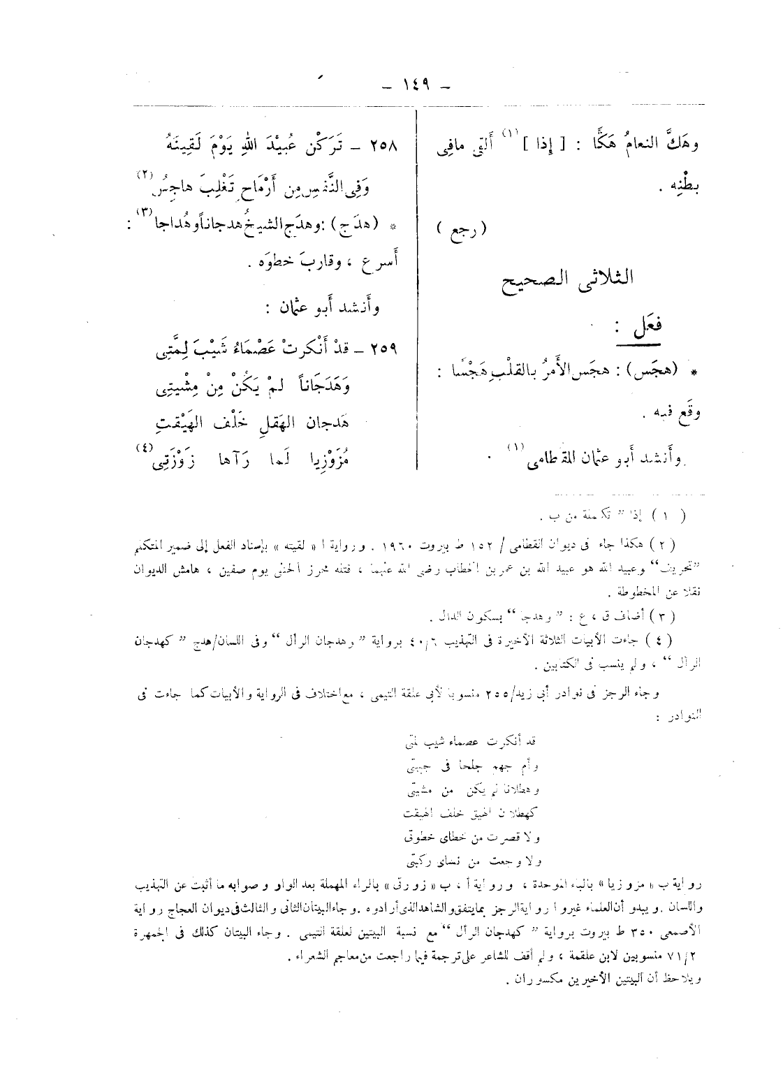 (¬4) جاءت الأبيات الثلاثة الأخيرة فى التهذيب 6/ 40 برواية وهدجان الرأل وفى اللسان/ هدج كهدجان الرأل، ولم ينسب فى الكتابين.
