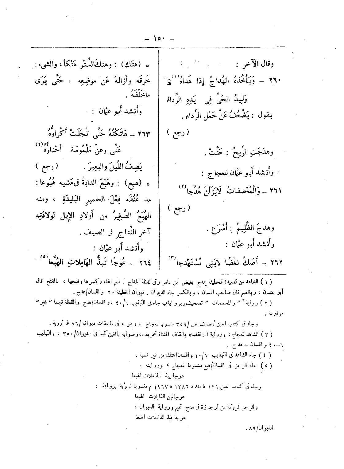 وجاء فى كتاب العين 126 ط بغداد 1386 هـ 1967 م منسوبا لرؤبة برواية: