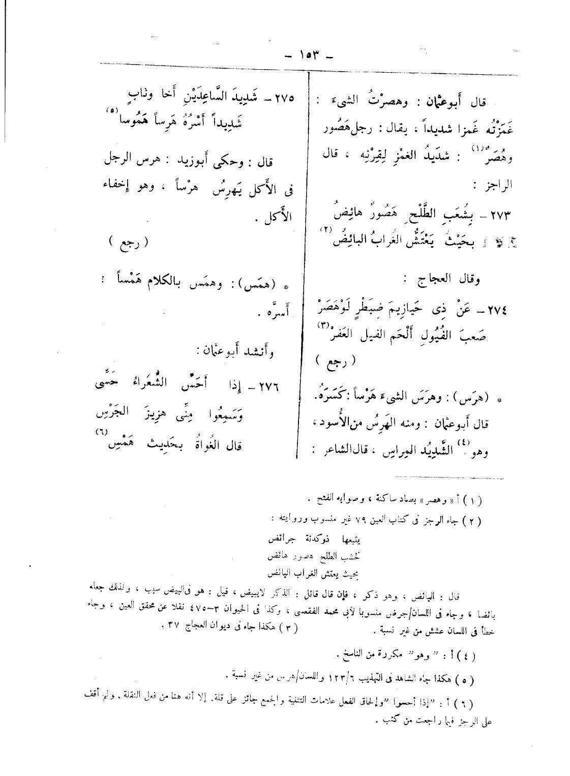 275 - شديد السّاعدين أخا وثاب … شديدا أسره هرسا هموسا (¬5)