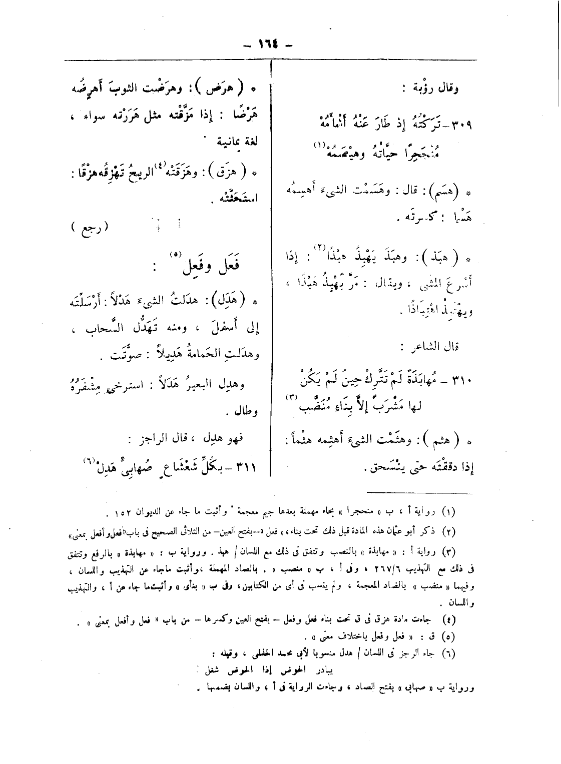 (¬4) جاءت مادة هزق فى ق تحت بناء فعل وفعل - بفتح العين وكسرها - من باب «فعل وأفعل بمعنى».