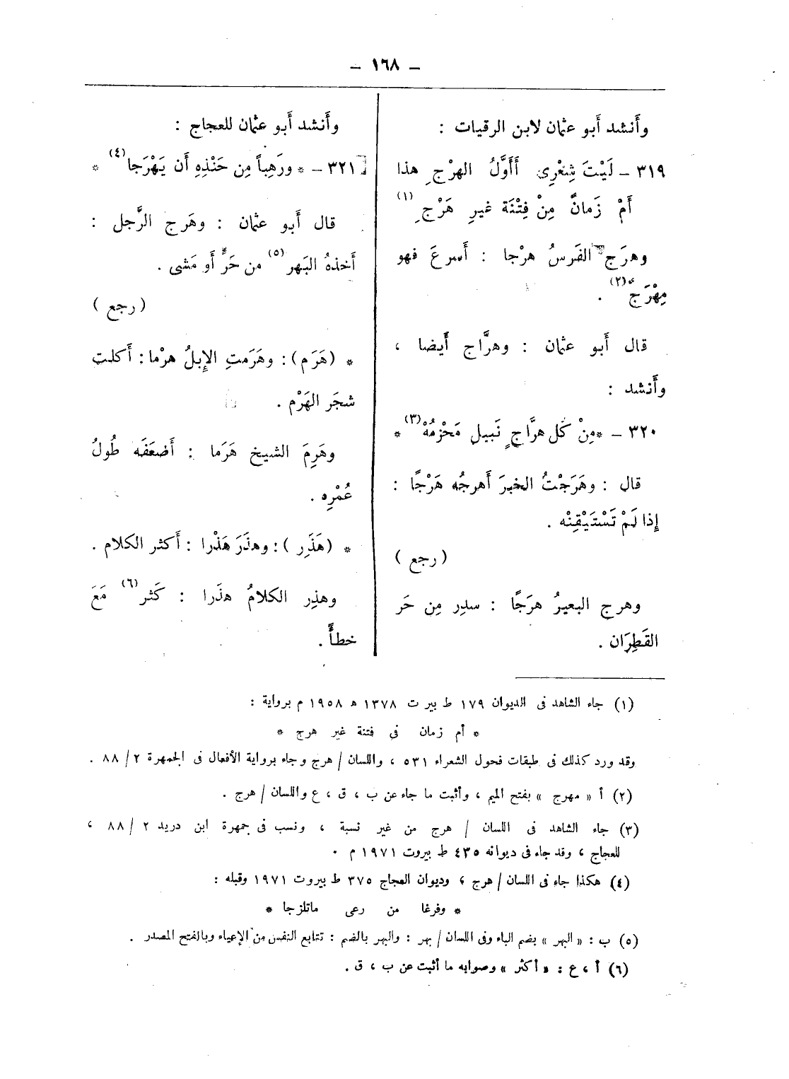 (¬3) جاء الشاهد فى اللسان/ هرج من غير نسبة، ونسب فى جمهرة ابن دريد 2/ 88، للعجاج، وقد جاء فى ديوانه 435 ط بيروت 1971 م.