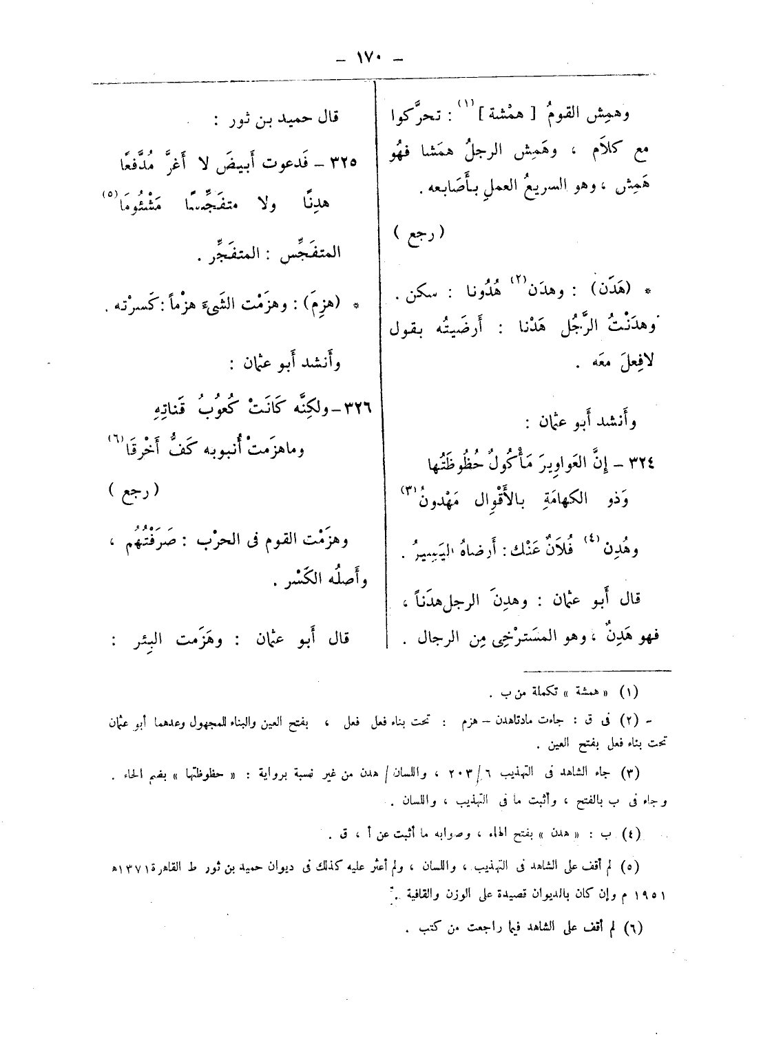 (¬5) لم أقف على الشاهد فى التهذيب، واللسان، ولم أعثر عليه كذلك فى ديوان حميد بن ثور ط القاهرة 1371 هـ 1951 م وإن كان بالديوان قصيدة على الوزن والقافية.