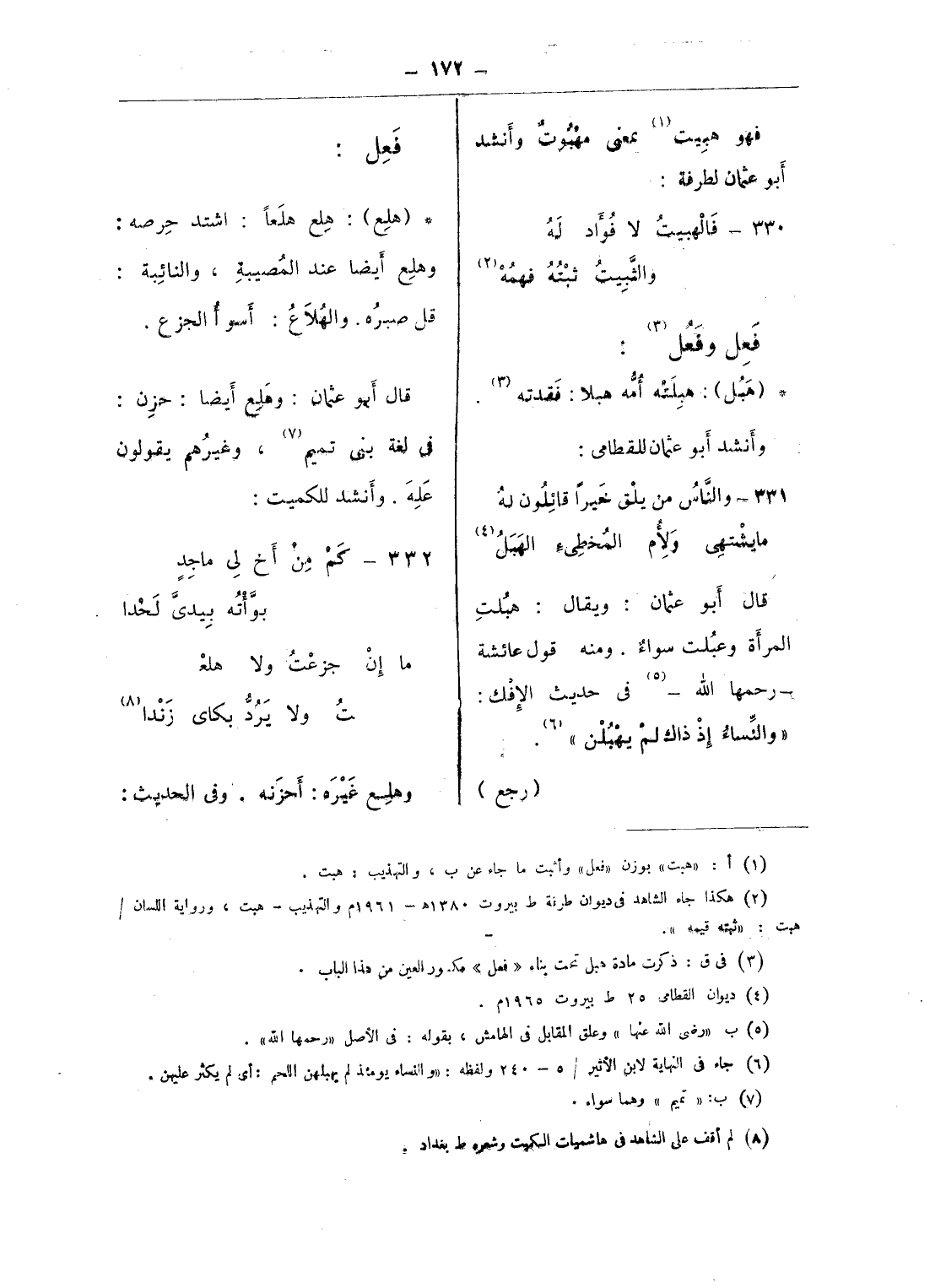 330 - فالهبيت لا فؤاد له … والثّبيت ثبته فهمه (¬2)