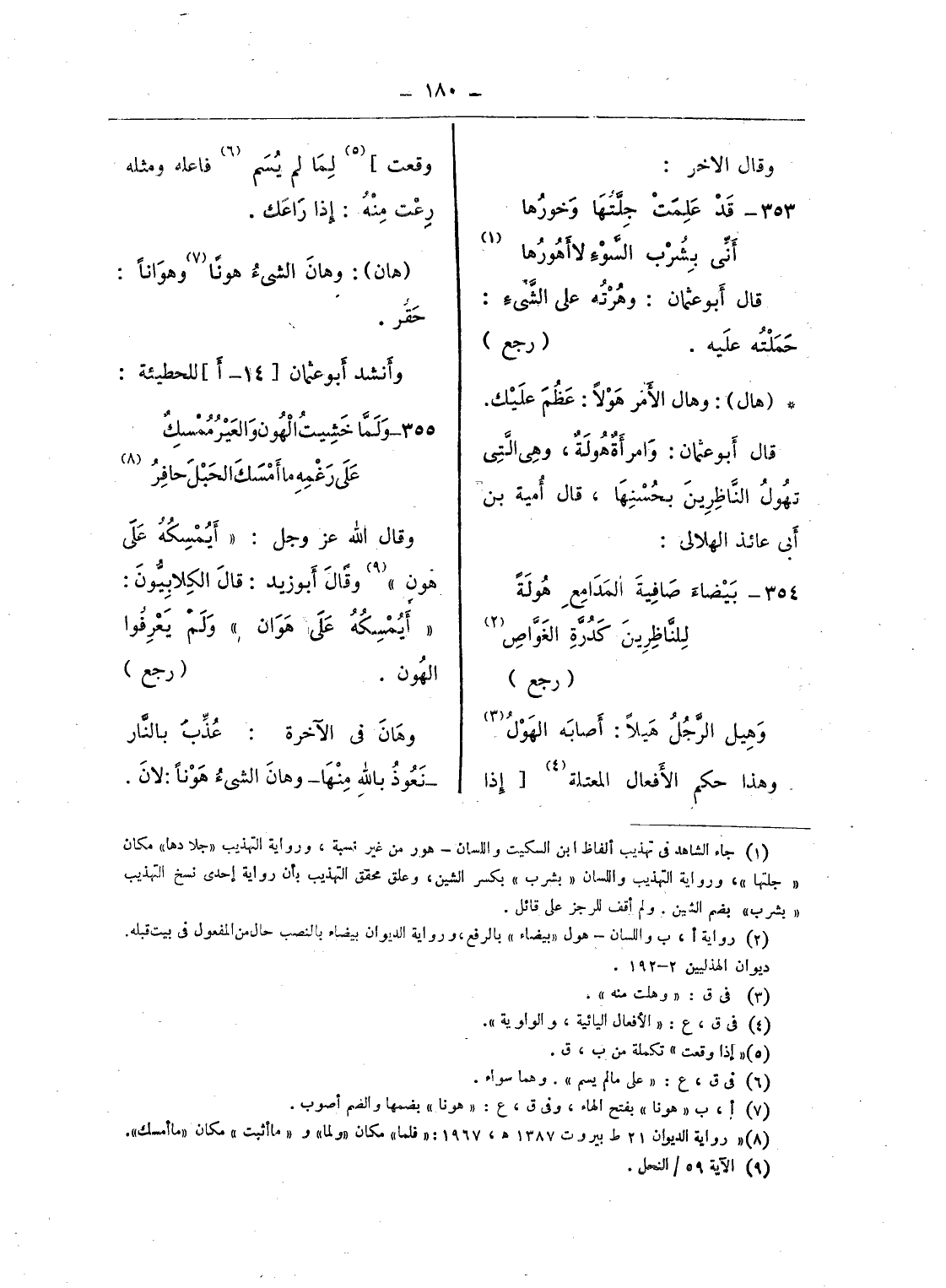 (¬8) «رواية الديوان 21 ط بيروت 1387 هـ، 1967: «فلما» مكان «ولما» و «ما أثبت» مكان «ما أمسك».