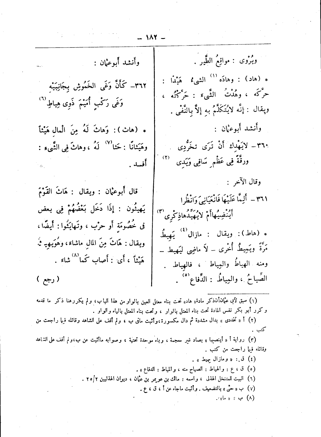 (¬1) سبق لأبى عثمان أن ذكر مادة «هاد» تحت بناء معتل العين بالواو من هذا الباب، ولم يكرر هنا ذكر ما قدمه وكرر أبو بكر نفس المادة تحت بناء المعتل بالواو، وتحت بناء المعتل بالياء والواو.