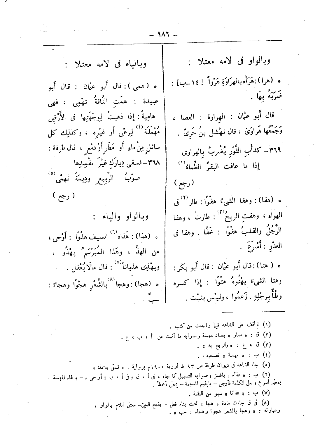 (¬8) فى ق جاءت مادة «هجا» تحت بناء فعل - بفتح العين - معتل اللام بالواو.