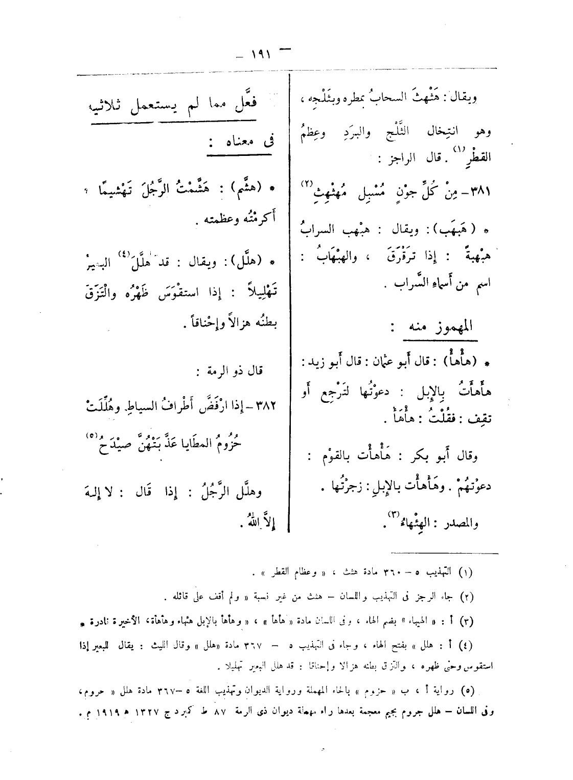 (¬3) أ: «الهيهاء» بضم الهاء، وفى اللسان مادة «هأهأ»، «وهأهأ بالإبل هئهاء وهأهأة، الأخيرة نادرة.