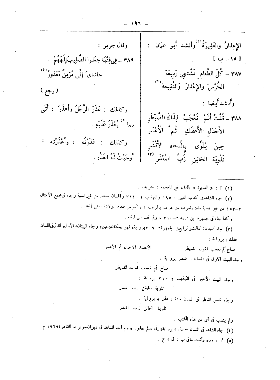 (¬4) جاء الشاهد فى اللسان - عذر، برواية «إنى مسلم معذور» ولم أجد الشاهد فى ديوان جرير ط القاهرة 1969 م