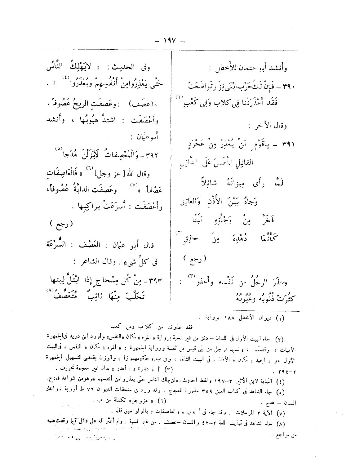 (¬8) جاء الشاهد فى تهذيب اللغة 2 - 42 واللسان - عصف. من غير نسبة. ولم أعثر له على قائل فيما وقفت عليه من مراجع.