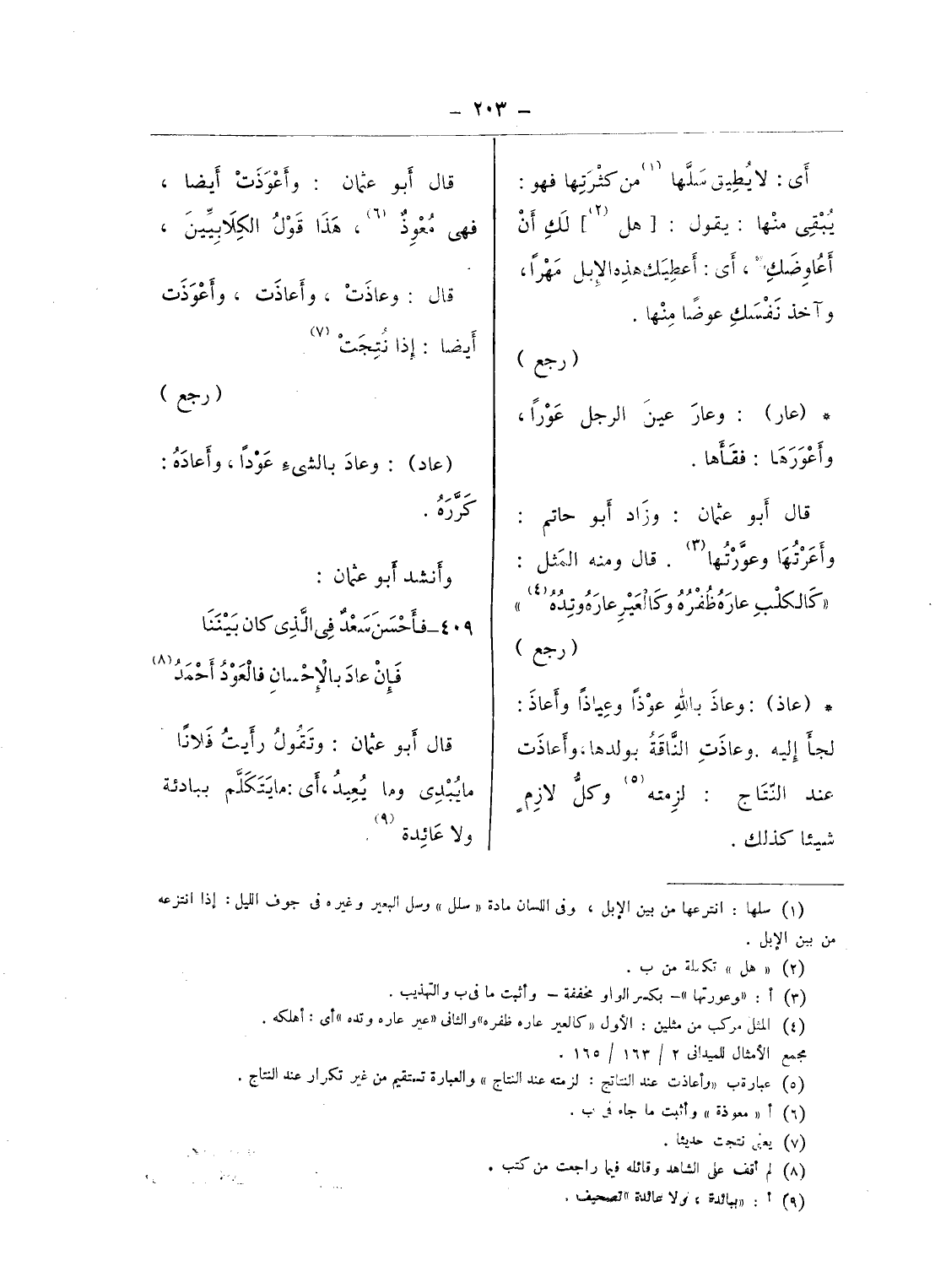 (¬5) عبارة ب «وأعاذت عند النتاتج: لزمته عند النتاج» والعبارة تستقيم من غير تكرار عند النتاج.