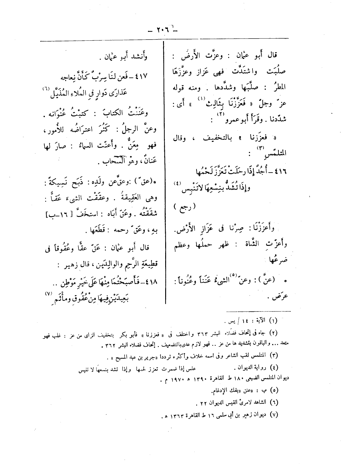 (¬2) جاء فى إتحاف فضلاء البشر 363 واختلف فى «فعززنا» فأبو بكر بتخفيف الزاى من عز: غلب فهو متعد ... والباقون بتشديدها من عز .. فهو لازم عدى بالتضعيف. إتحاف فضلاء البشر 362.
