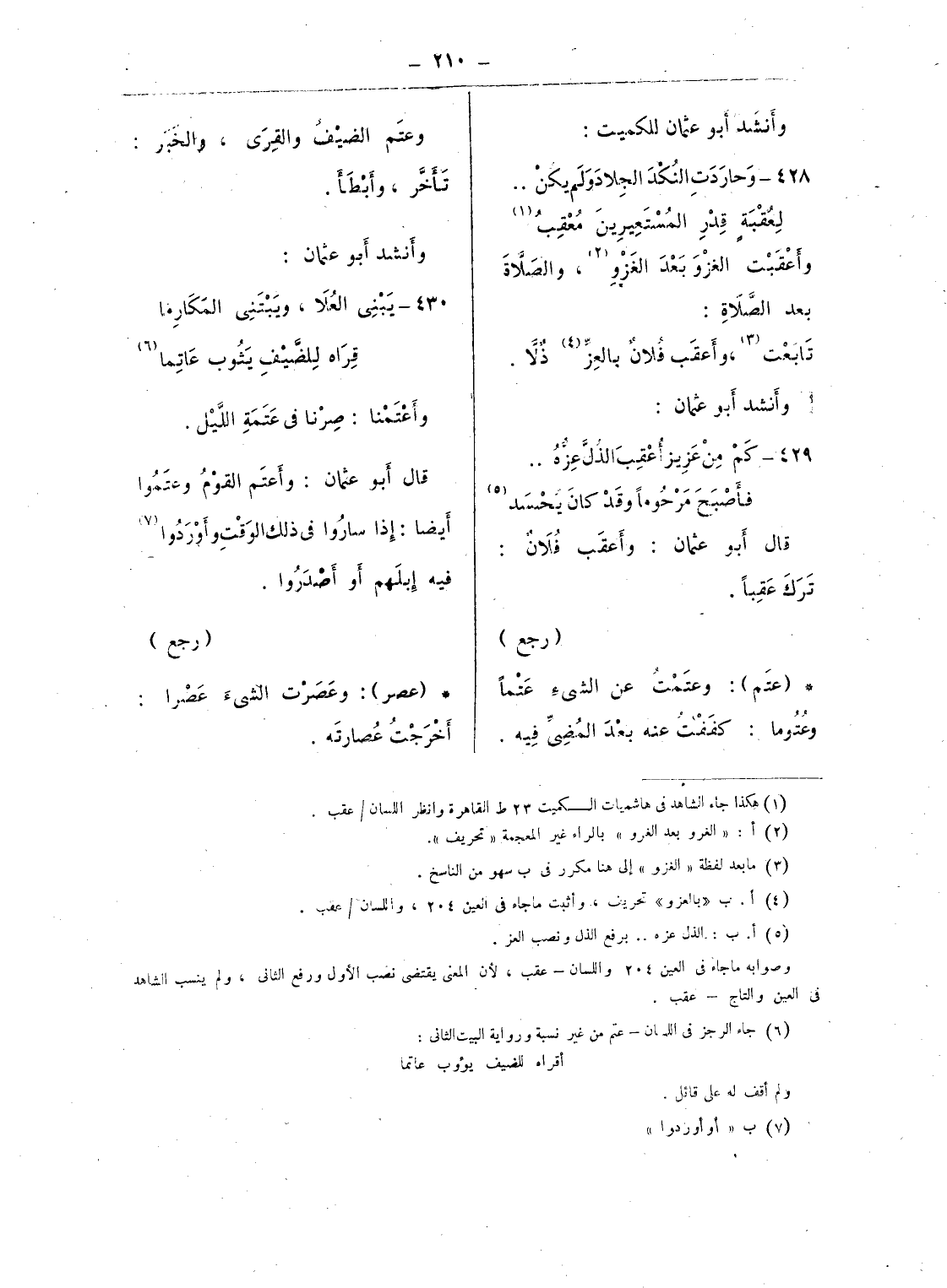 (¬6) جاء الرجز فى اللسان - عتم من غير نسبة ورواية البيت الثانى: