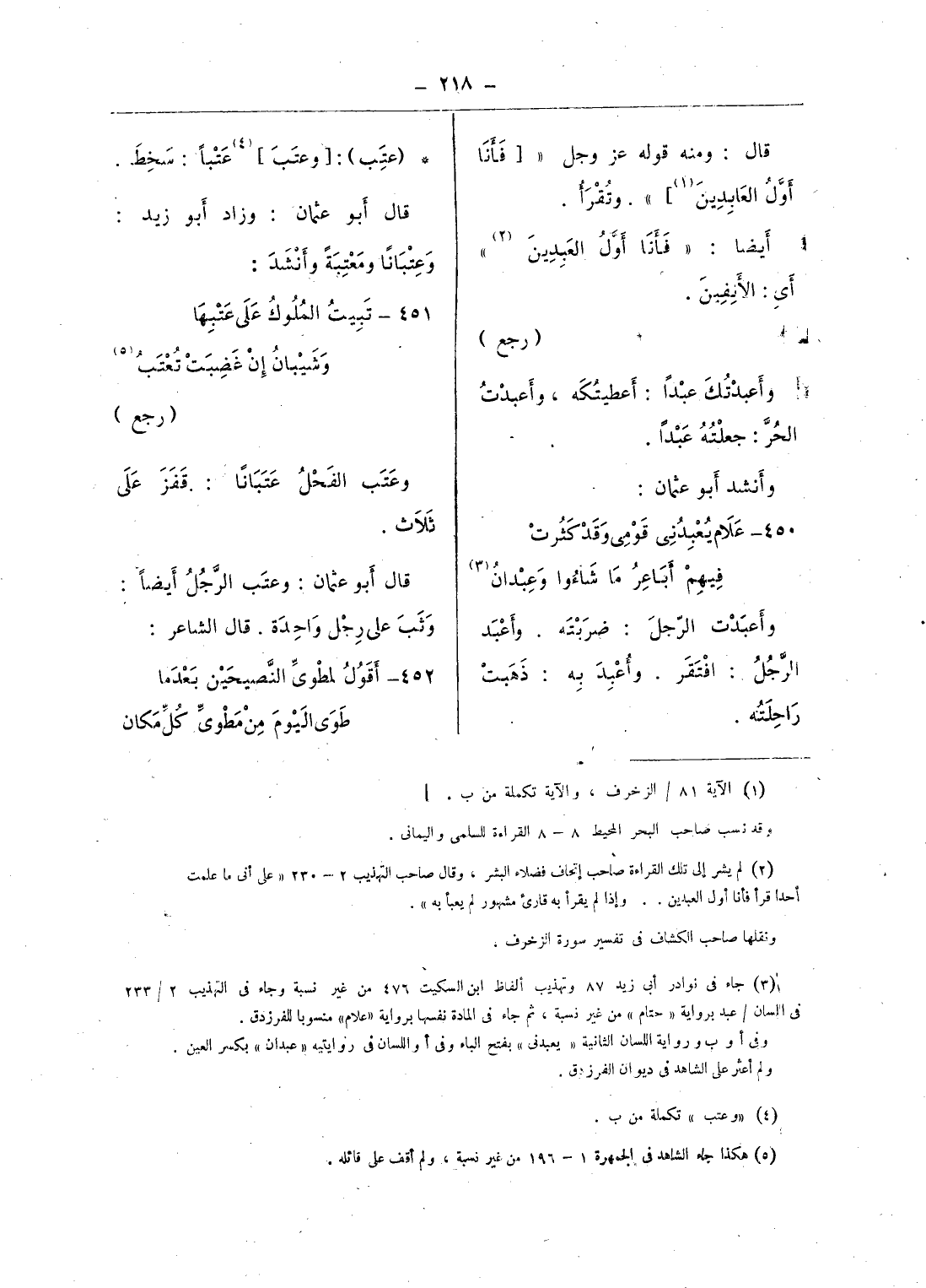 وفى أوب ورواية اللسان الثانية «يعبدنى» بفتح الباء وفى أواللسان فى روايتيه «عبدان» بكسر العين.