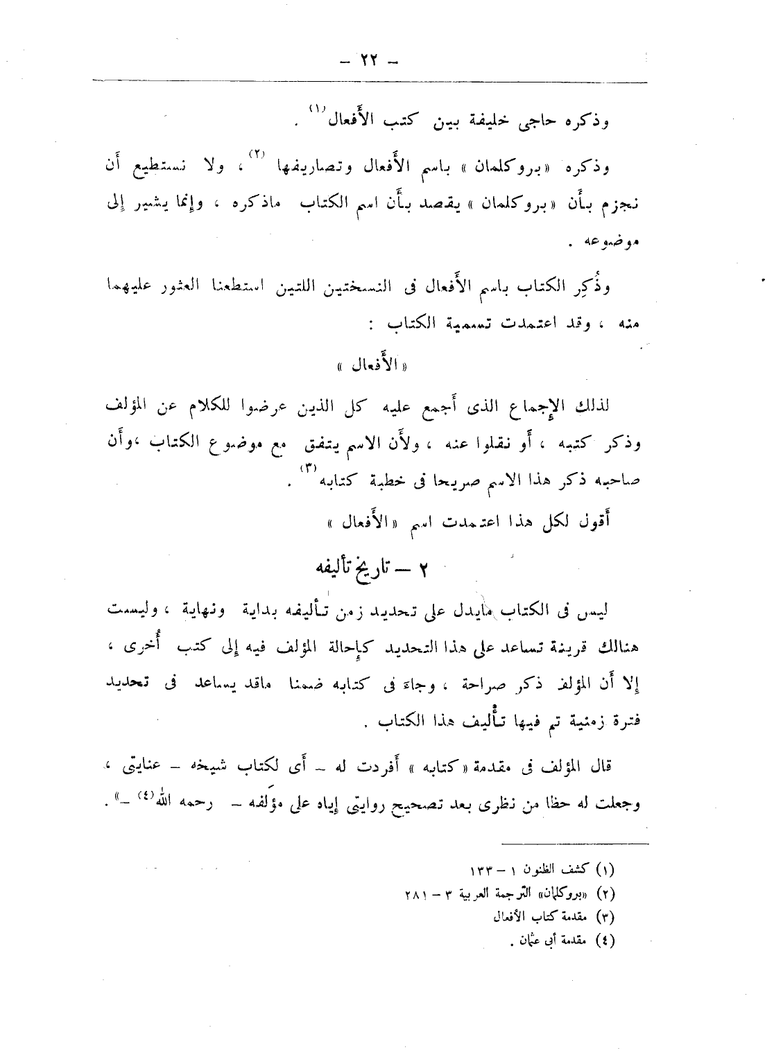 وذكره حاجى خليفة بين كتب الأفعال (¬1).