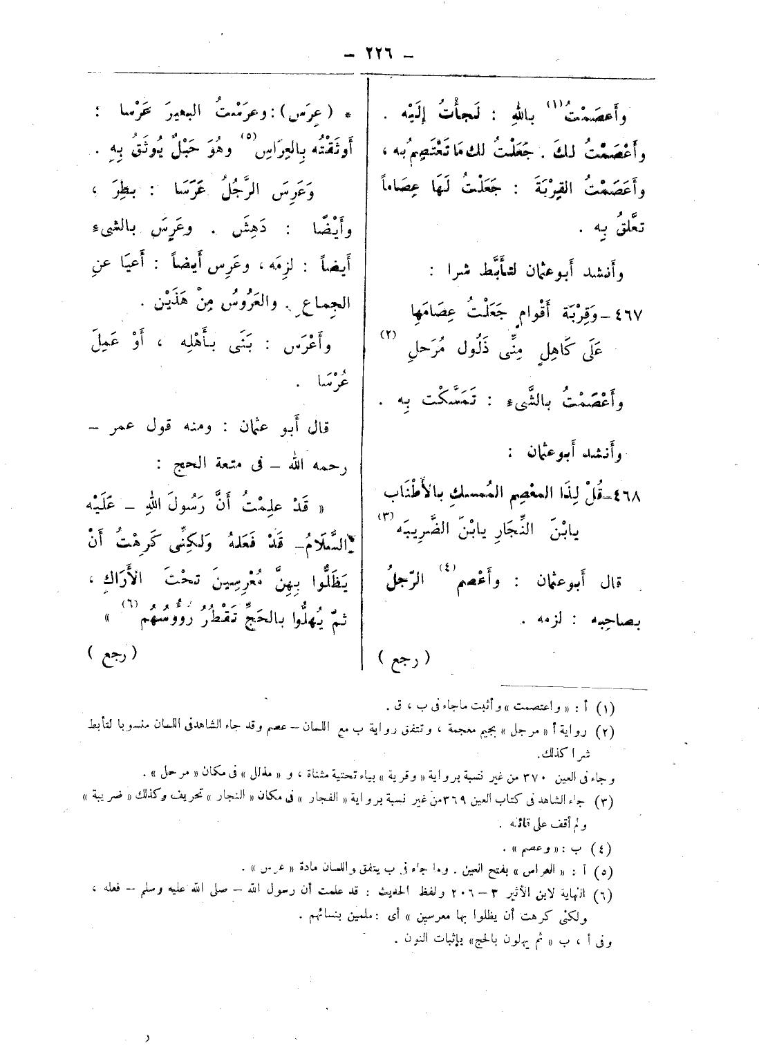 (¬5) أ: «العراس» بفتح العين. وما جاء ب يتفق واللسان مادة «عرس».