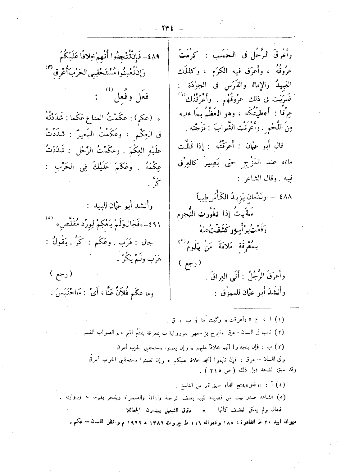 ديوان لبيد 20 ط القاهرة: 188 وديوانه 116 ط بيروت 1386 هـ 1966 م وانظر اللسان - عكم.