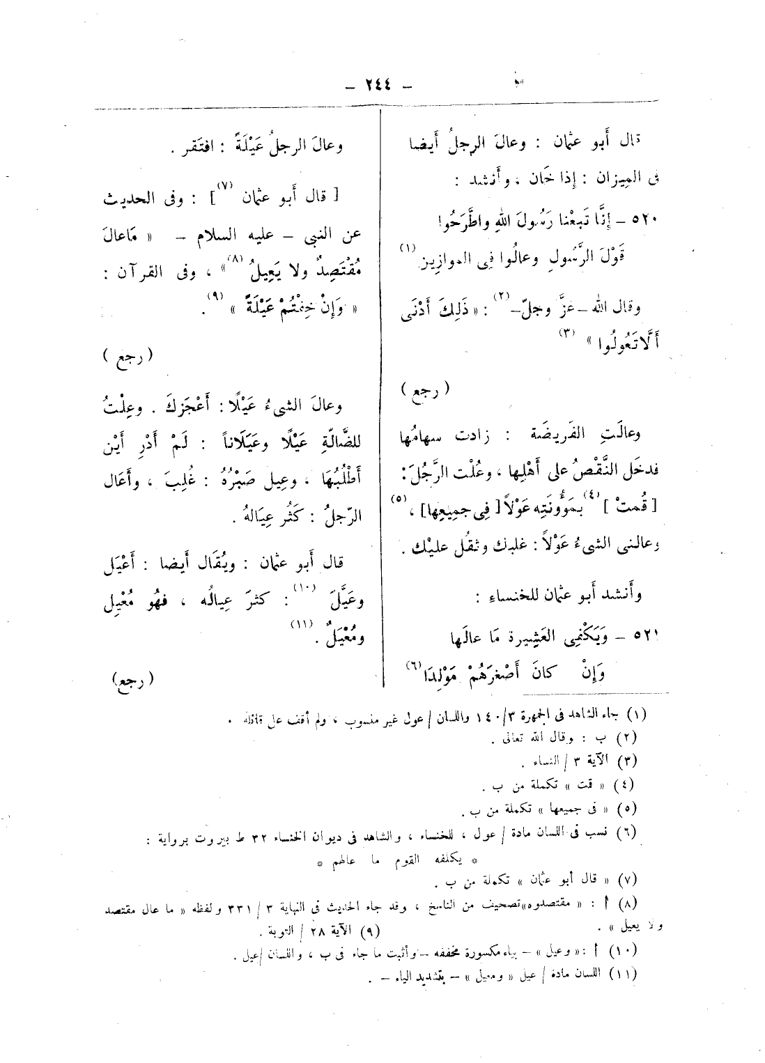 [قال أبو عثمان (¬7)]: وفى الحديث عن النبى - عليه السّلام - «ما عال مقتصد ولا يعيل (¬8)»، وفى القرآن: