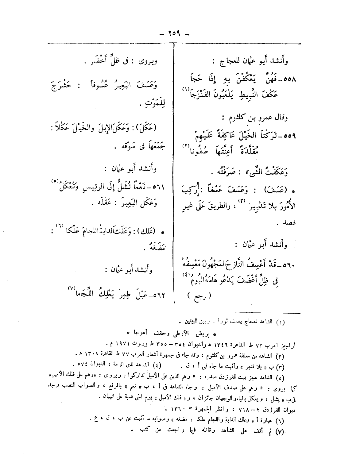 أراجيز العرب 72 ط القاهرة 1346 هـ والديوان 354 - 355 ط بيروت 1971 م.
