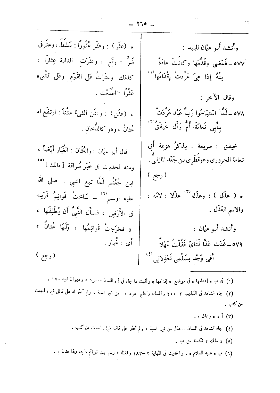 قال أبو عثمان: والعثان: الغبار أيضا، ومنه الحديث فى خبر سراقة [مالك] (¬5) ابن جعشم لمّا تبع النبى - صلّى الله