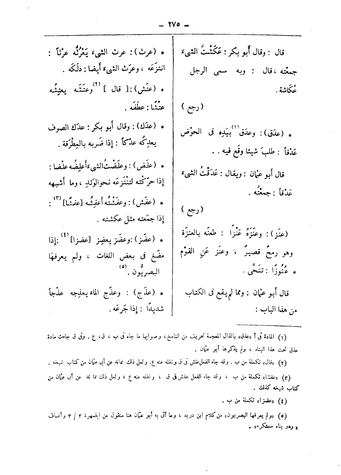 (¬3) «عفشا» تكملة من ب، وقد جاء الفعل عفش فى ق، ونقله عنه ع، ولعل ذلك مماند عن أبى عثمان من كتاب شيخه كذلك.