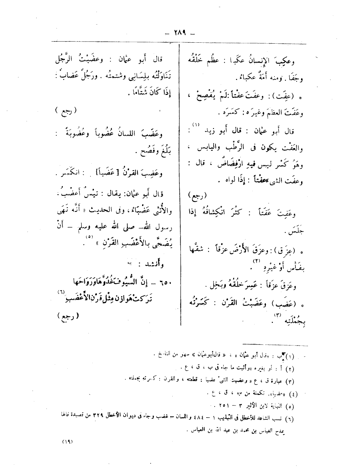 (¬6) نسب الشاهد للأخطل فى التهذيب 1 - 484 واللسان - غضب وجاء فى ديوان الأخطل 329 من قصيدة قالها يمدح العباس بن محمد بن عبد الله بن العباس.