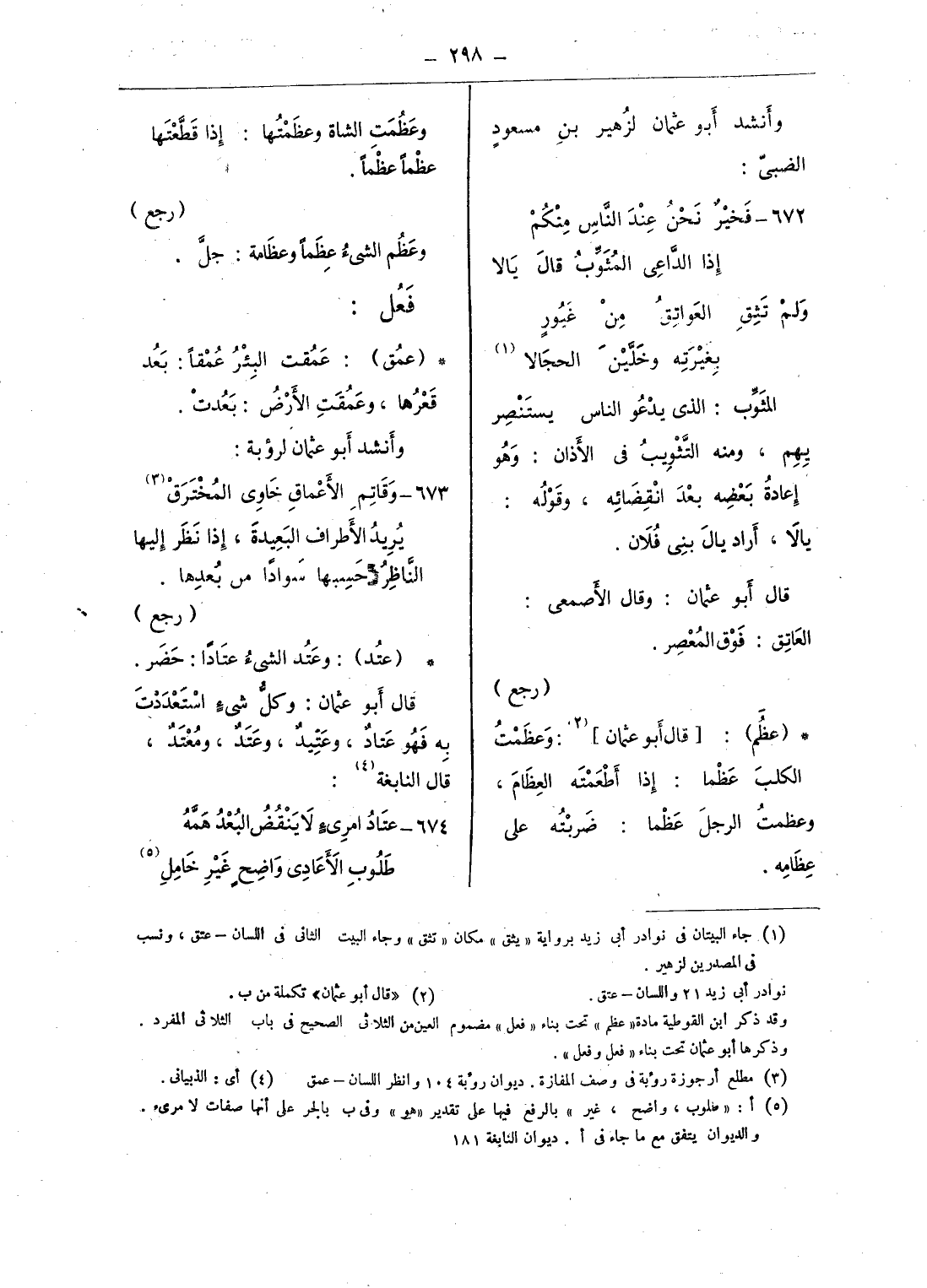 (¬1) جاء البيتان فى نوادر أبى زيد برواية «يثق» مكان «تثق» وجاء البيت الثانى فى اللسان - عتق، ونسب فى المصدرين لزهير.