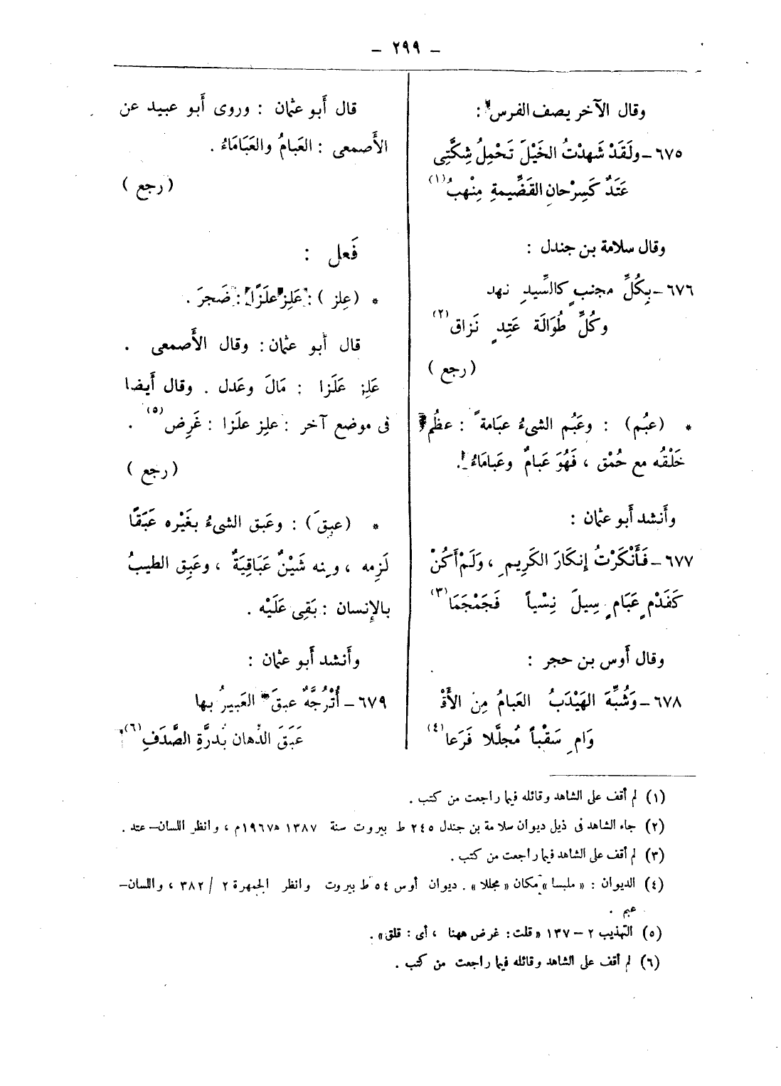 (¬4) الديوان: «ملبسا» مكان «مجللا». ديوان أوس 54 ط بيروت وانظر الجمهرة 2/ 382، واللسان - عبم.
