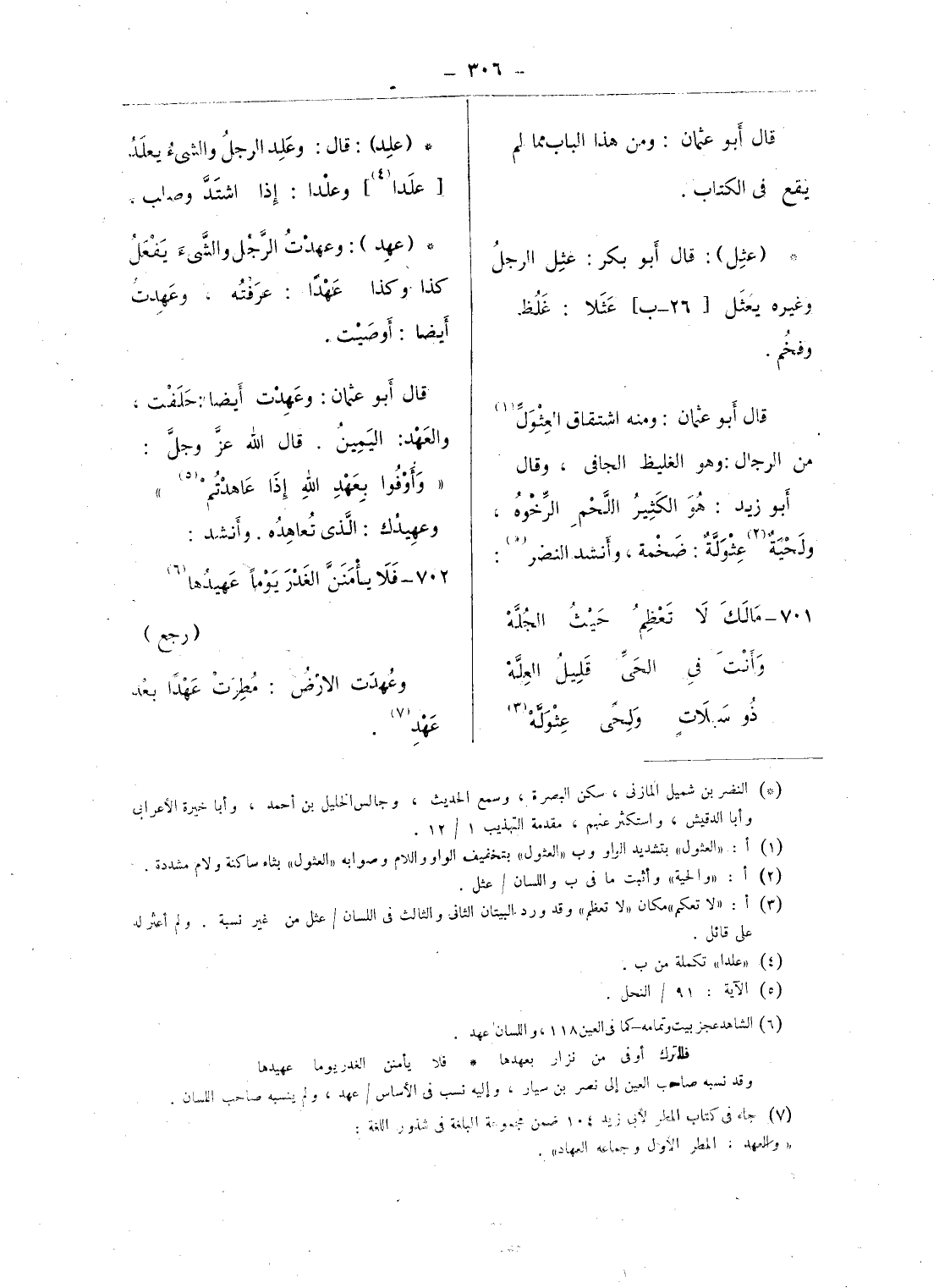 (¬1) أ: «العثول» بتشديد الواو وب «العثول» بتخفيف الواو واللام وصوابه «العثول» بثاء ساكنة ولام مشددة.