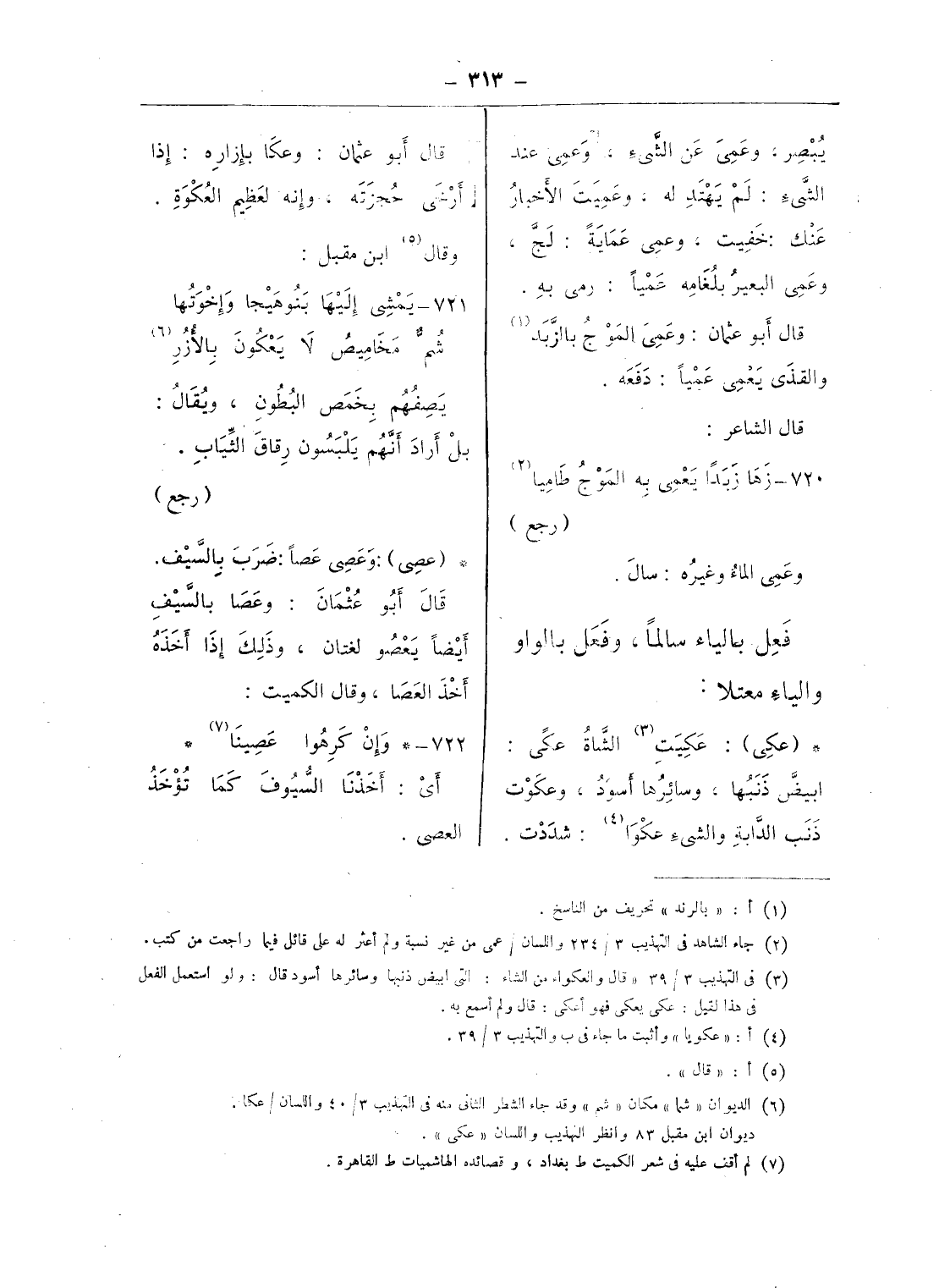 (¬3) فى التهذيب 3/ 39 «قال والعكواء من الشاء: التى ابيض ذنبها وسائرها أسود قال: ولو استعمل الفعل فى هذا لقيل: عكى يعكى فهو أعكى: قال ولم أسمع به.