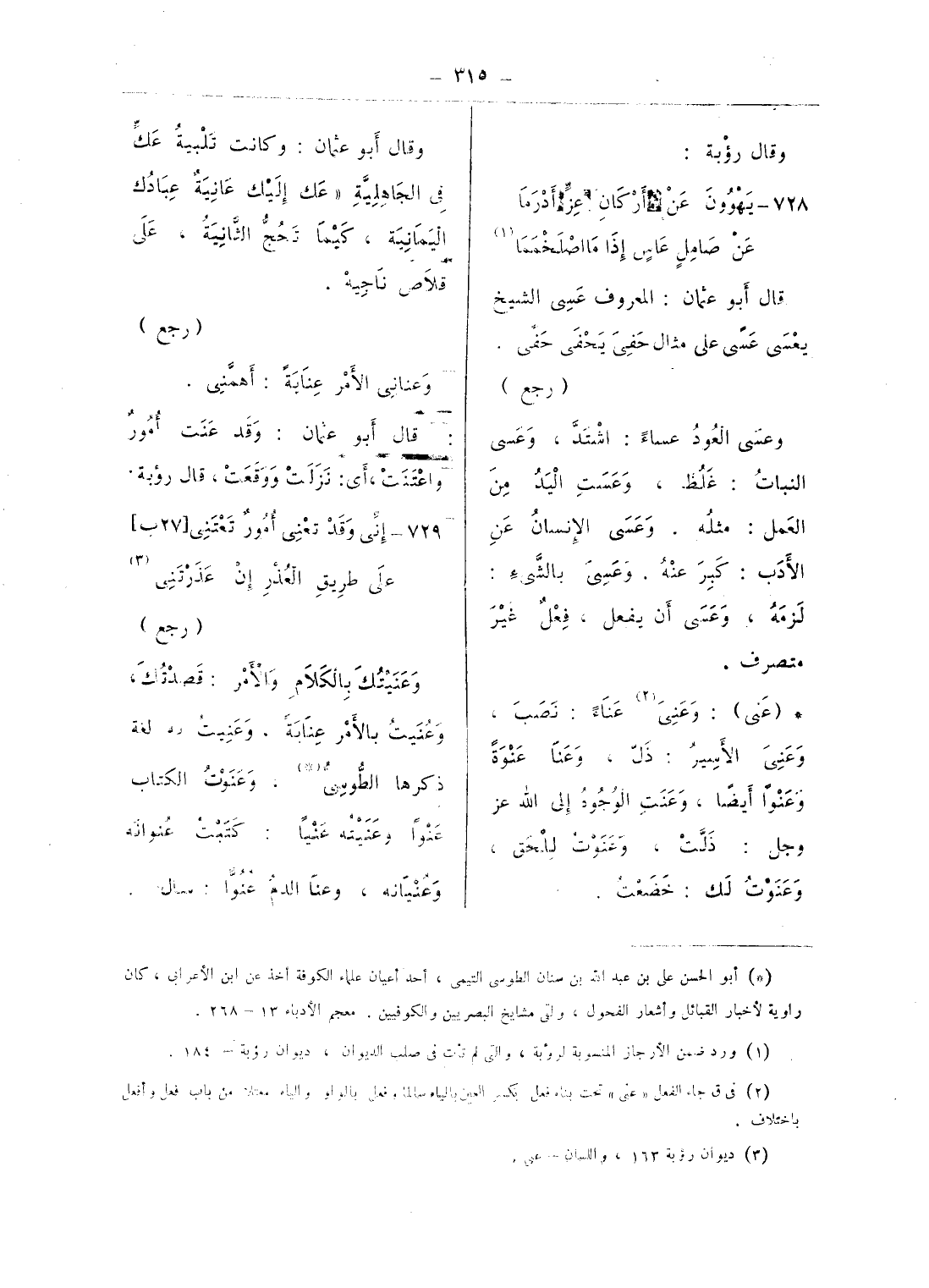 (¬3) ديوان رؤبة 163، واللسان - عنى.