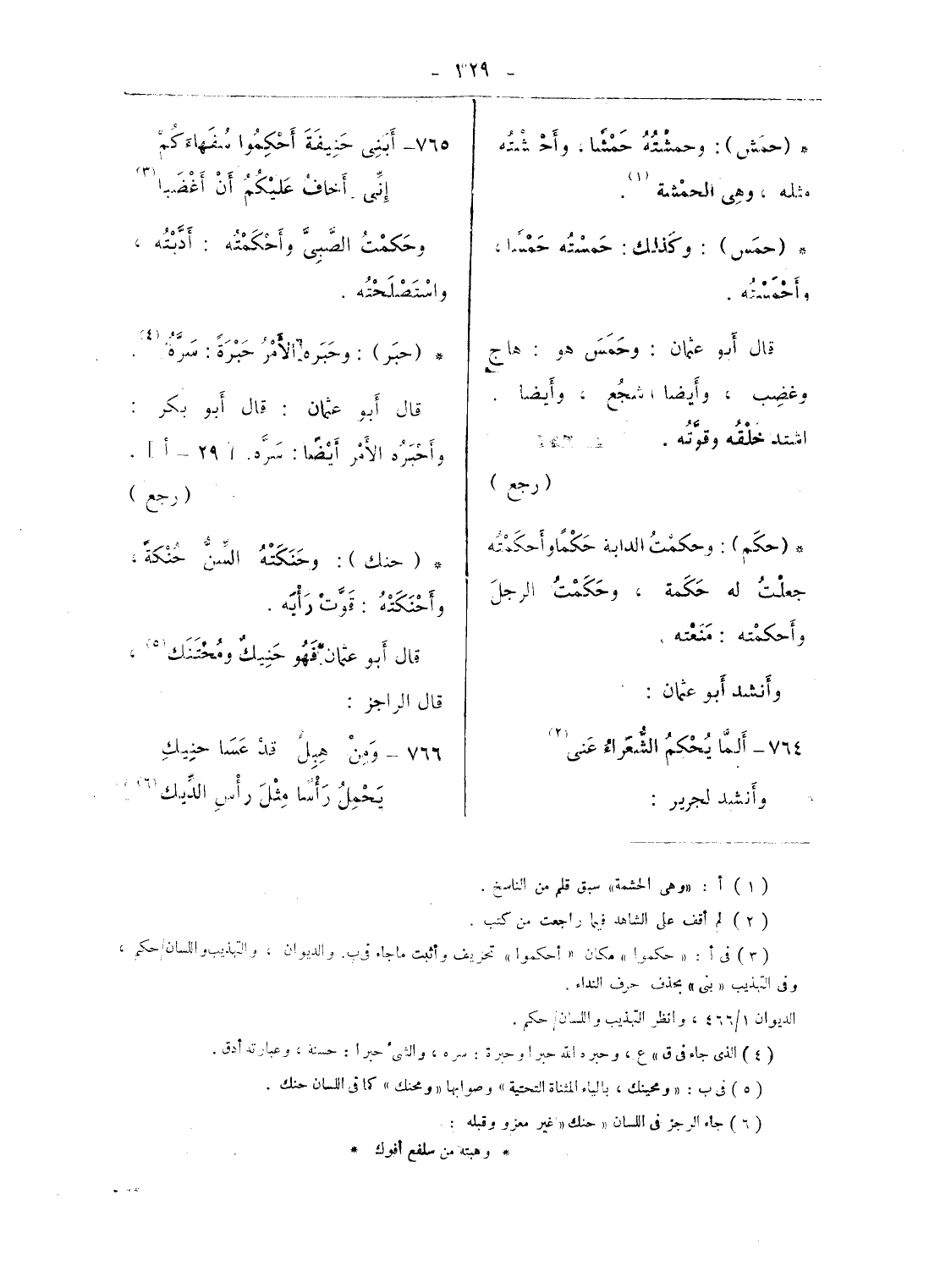 الديوان 1/ 466، وانظر التهذيب واللسان/ حكم.