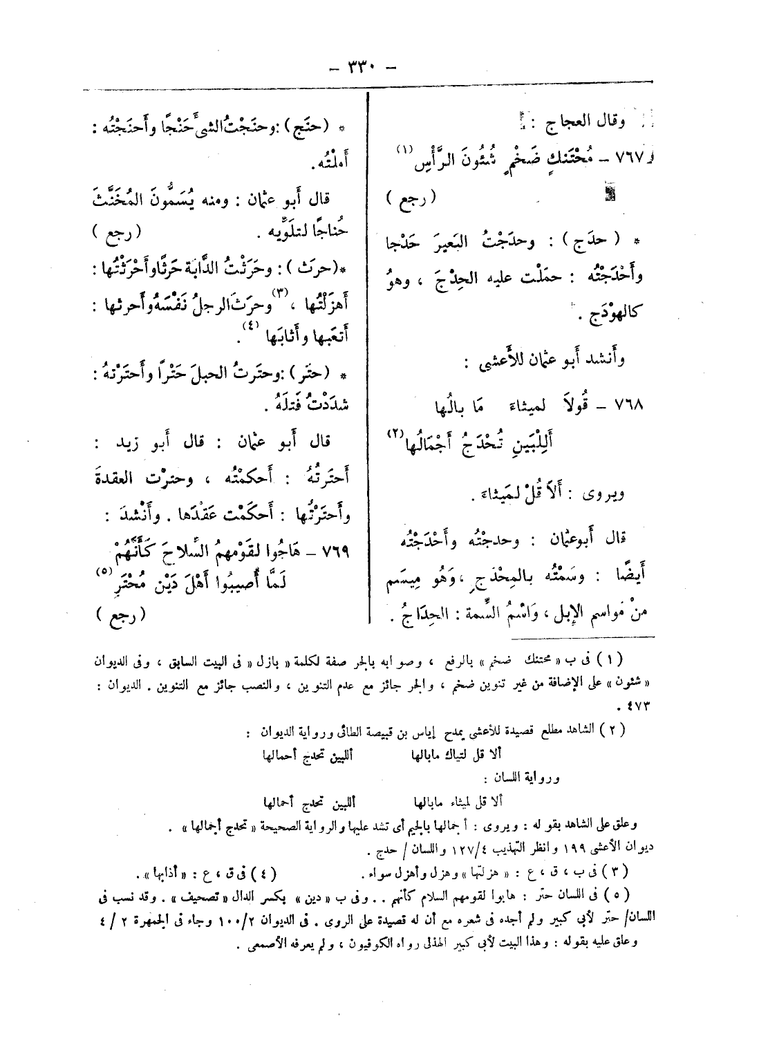 (¬5) فى اللسان حتر: هابوا لقومهم السّلام كأنهم .. وفى ب «دين» بكسر الدال «تصحيف». وقد نسب فى اللسان/ حتر لأبى كبير ولم أجده فى شعره مع أن له قصيدة على الروى. فى الديوان 2/ 100 وجاء فى الجمهرة 2/ 4 وعلق عليه بقوله: وهذا البيت لأبى كبير الهذلى رواه الكوفيون، ولم يعرفه الأصمعى.