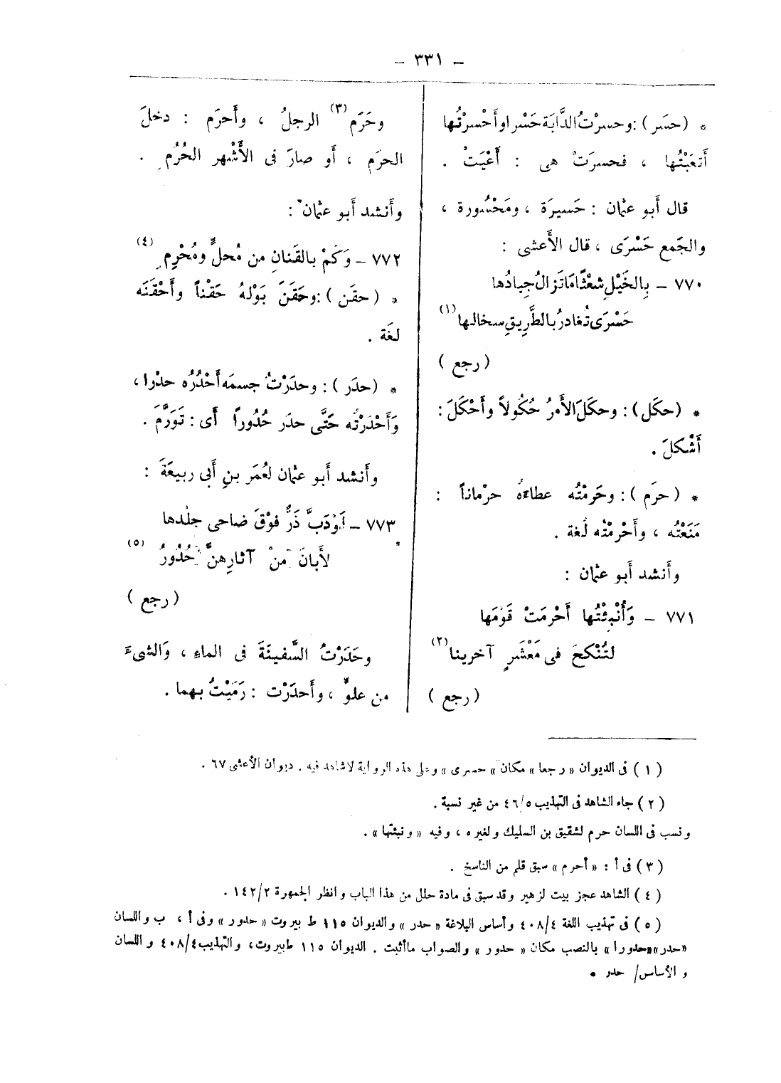(¬1) فى الديوان «رجعا» مكان «حسرى» وعلى هذه الرواية لا شاهد فيه. ديوان الأعشى 67.