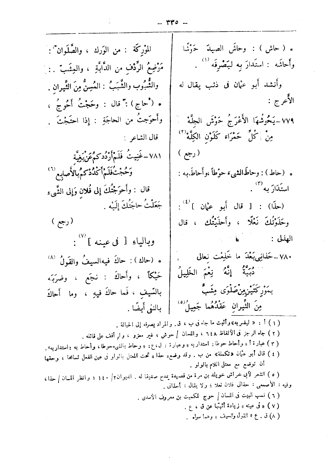 (¬2) جاء الرجز فى الألفاظ 648، واللسان/ حوش، غير معزو، ولم أقف على قائله.