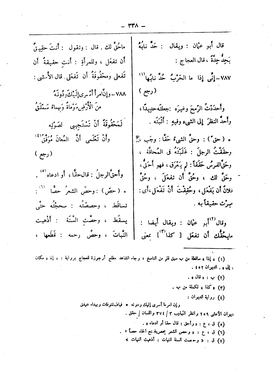 (¬7) ق: «وحصت السنة النبات: أذهبت النبات»