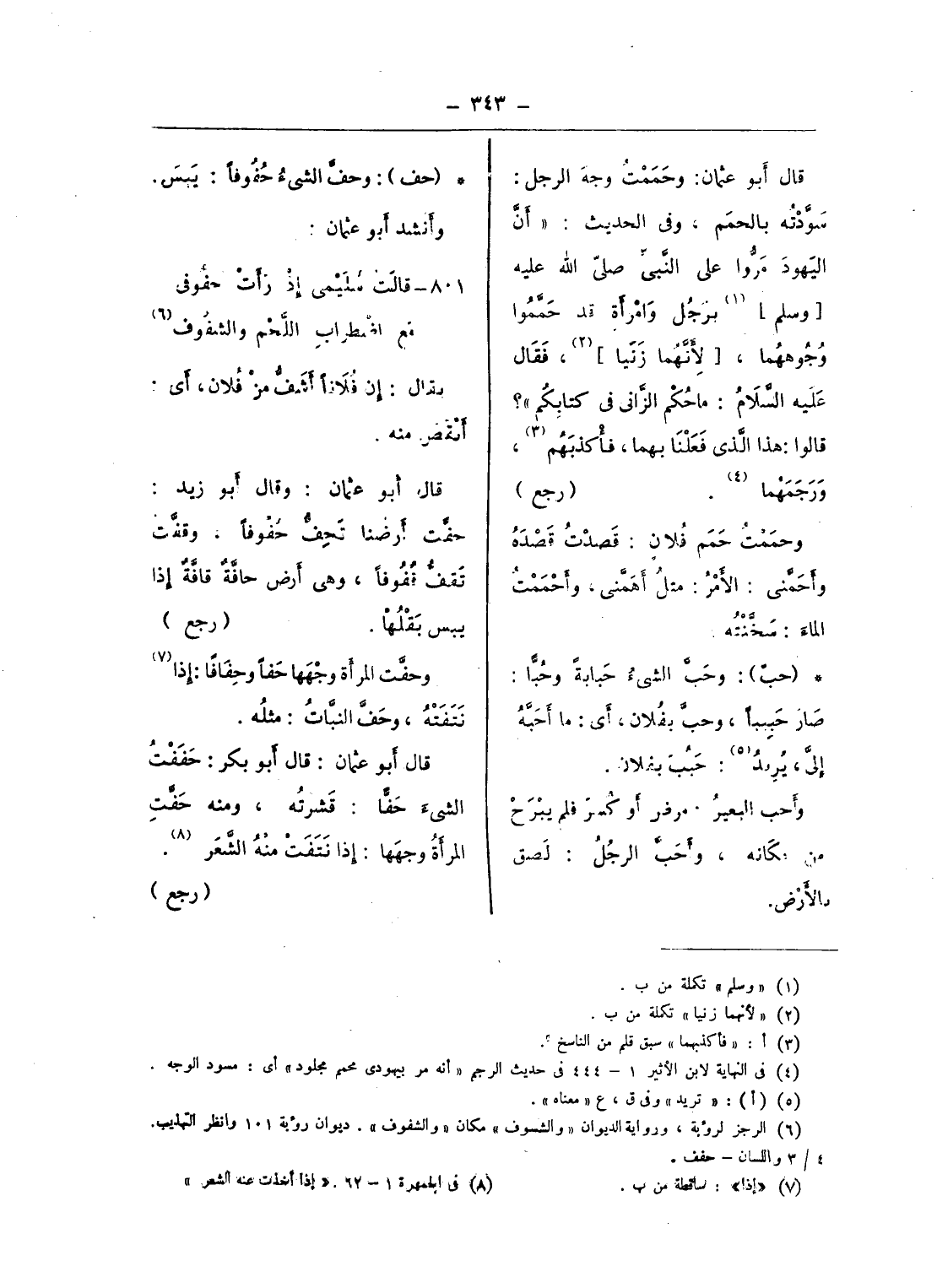 (¬4) فى النهاية لابن الأثير 1 - 444 فى حديث الرجم «أنه مر بيهودى محمم مجلود» أى: مسود الوجه.